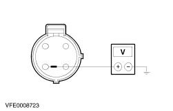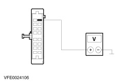 | | 2 Measure the voltage between the A/C clutch relay, socket C1011, pin 3, circuit 30-FA12 (RD), wiring harness side and ground. |
