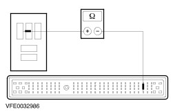 | | 2 Measure the resistance between the control panel for the climate control system, connector C380, pin 6, circuit 31S-FA26 (BK/RD), wiring harness side and ground. |